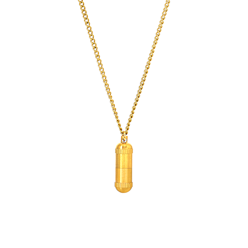 Χειροποίητο από ανοξείδωτο ατσάλι 316L με χρυσό φινίρισμα, το κολιέ σας Manifestation capsule είναι σχεδιασμένο για να διαρκεί μια ζωή.
