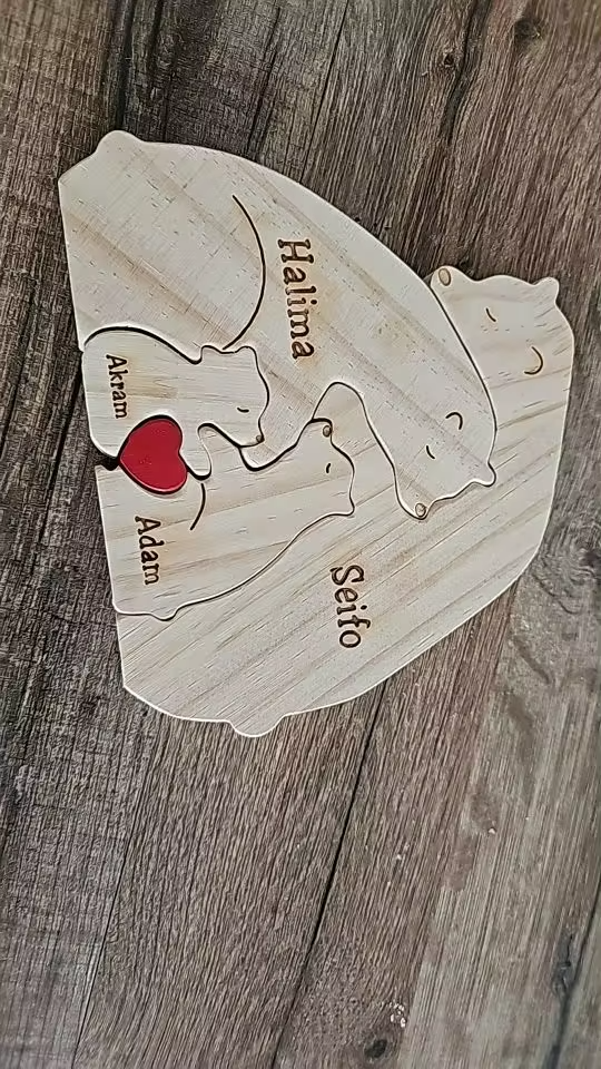 Después de haber comprado antes puzzles personalizados, éste destaca por la calidad de la madera y la precisión del grabado. Comparado con otros, este puzzle ofrece un mejor acabado, con detalles minuciosos que hacen que cada pieza sea única. La posibilidad de personalizar cada oso con los nombres de los miembros de la familia es una gran ventaja. Un producto magnífico para los amantes de los puzzles de calidad.